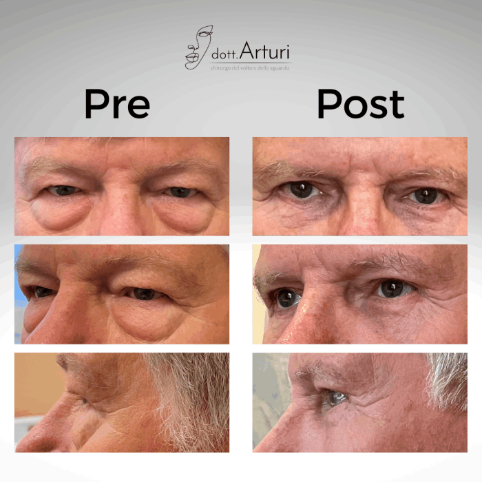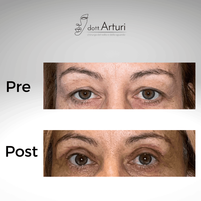 Va però specificato che, l’asportazione della cute eccedente a livello delle palpebre superiori migliora la dinamica (movimenti in chiusura ed apertura) delle stesse, rendendo più efficiente anche la distribuzione del film lacrimale sugli occhi. Per di più l’eliminazione di un plus cutaneo a livello delle porzioni più laterali delle palpebre superiori migliora il campo visivo (e cioè l’ampiezza del campo visibile dagli occhi sulle porzioni più laterali dello sguardo).